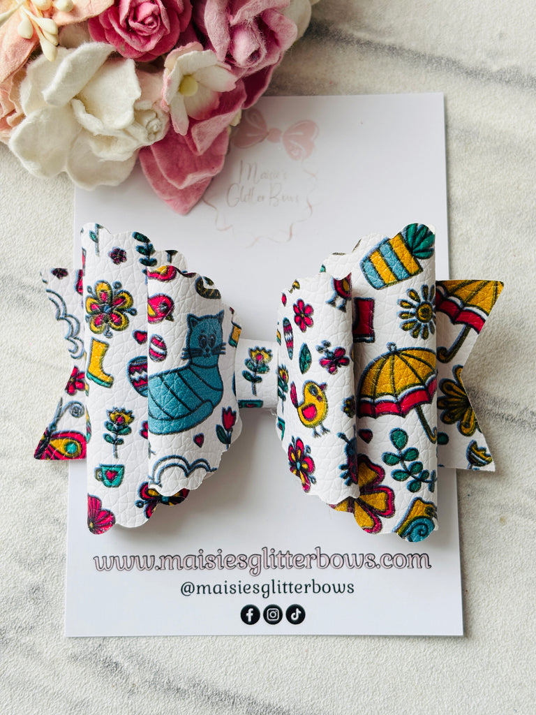 A leatherette fabric, print placement may vary