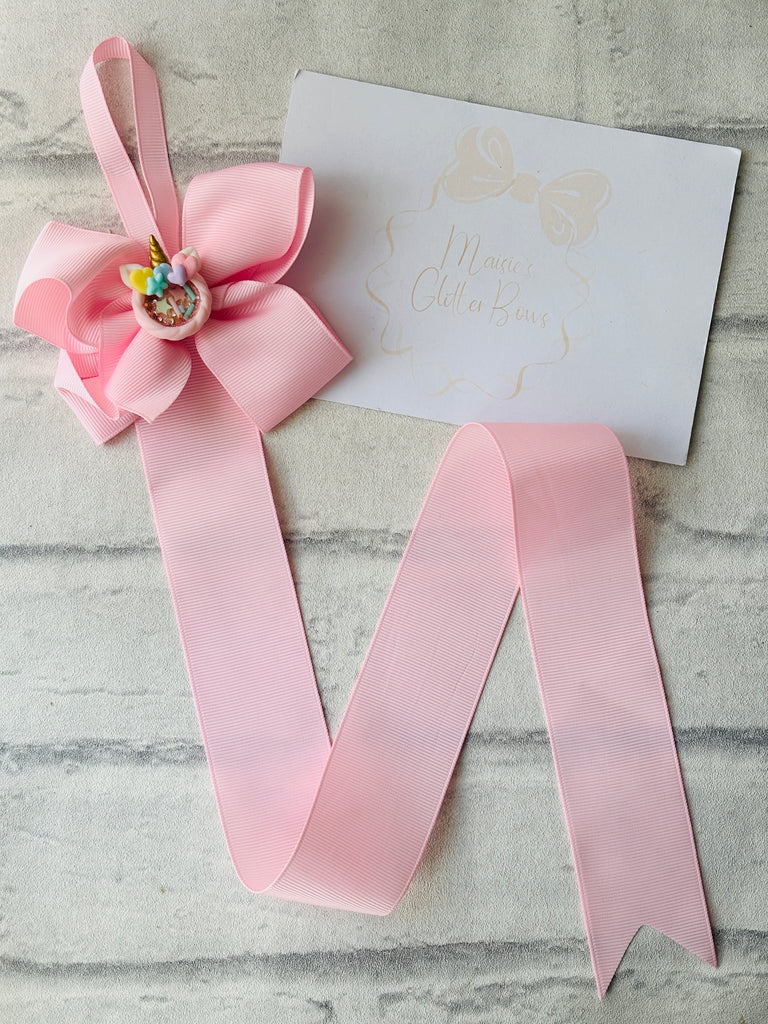 A ribbon bow, bow holder complete with an handmade clay