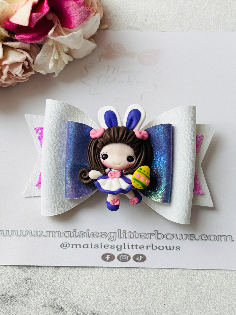 Purple & White Easter Girl Bow