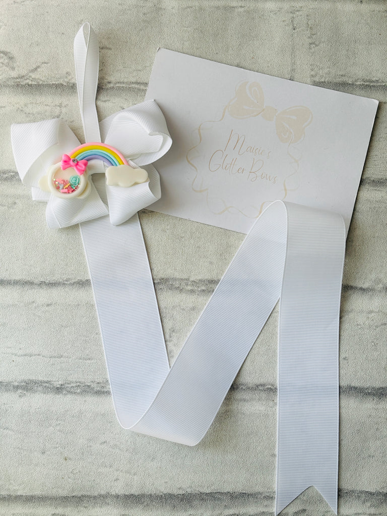 A length of grosgain ribbon is attached (approximately  22 inches long)