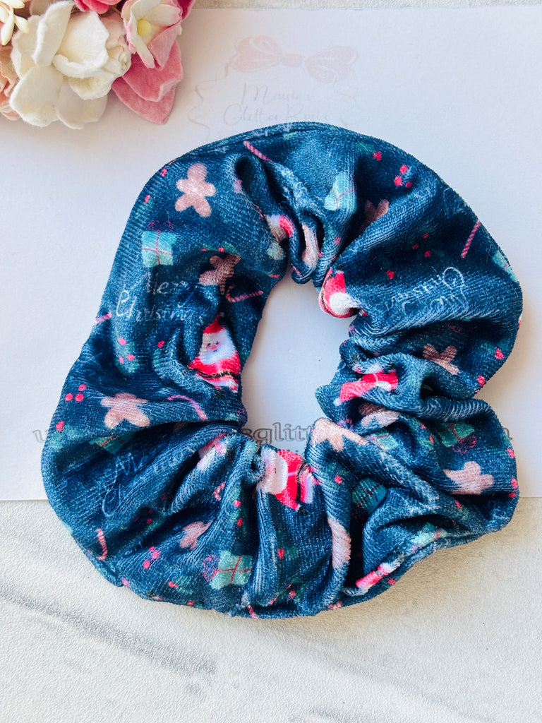 Navy Santa, Gingerbread & Candy Canes Velvet Scrunchie