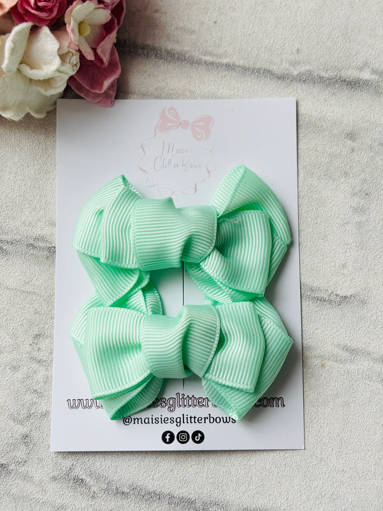 Each bow comes attached to an alligator clip (one is attached to go one right hand side and the other is placed to go other left hand side)