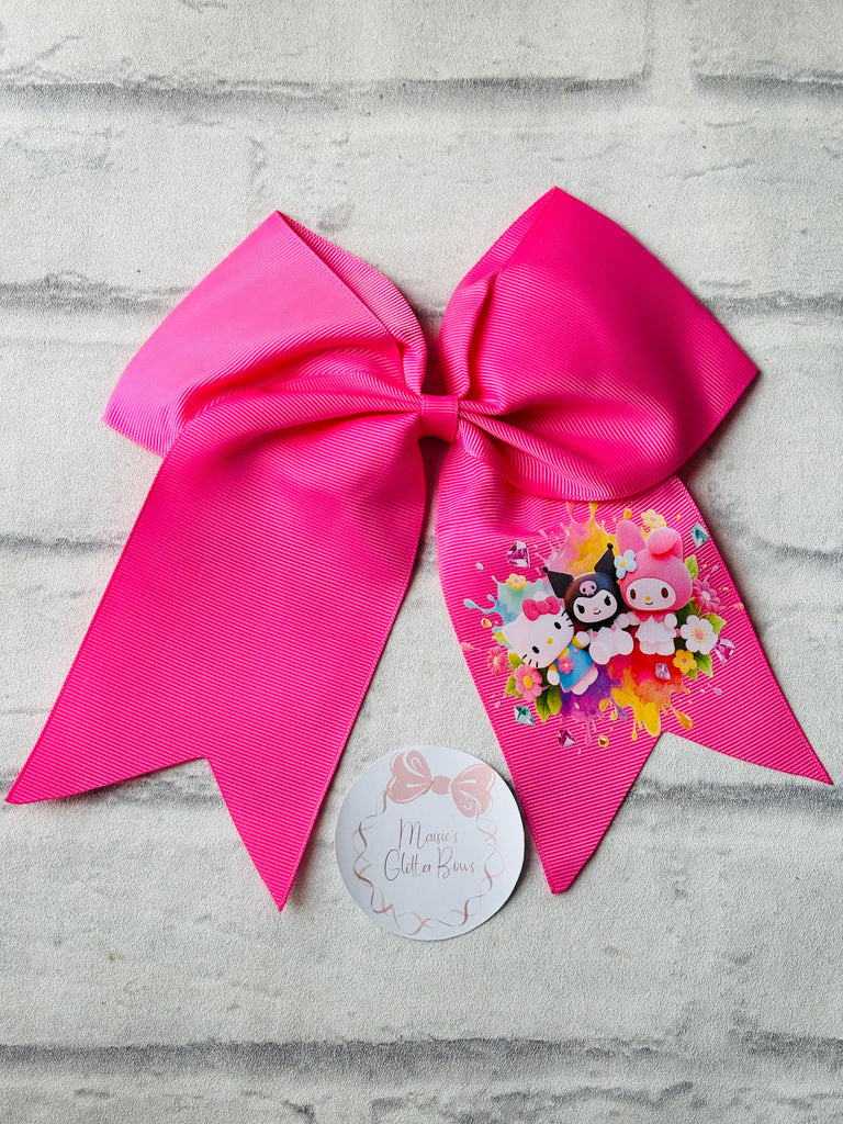 A large 6.5 inch grosgain ribbon ponytail bow, complete with a DTF transfer