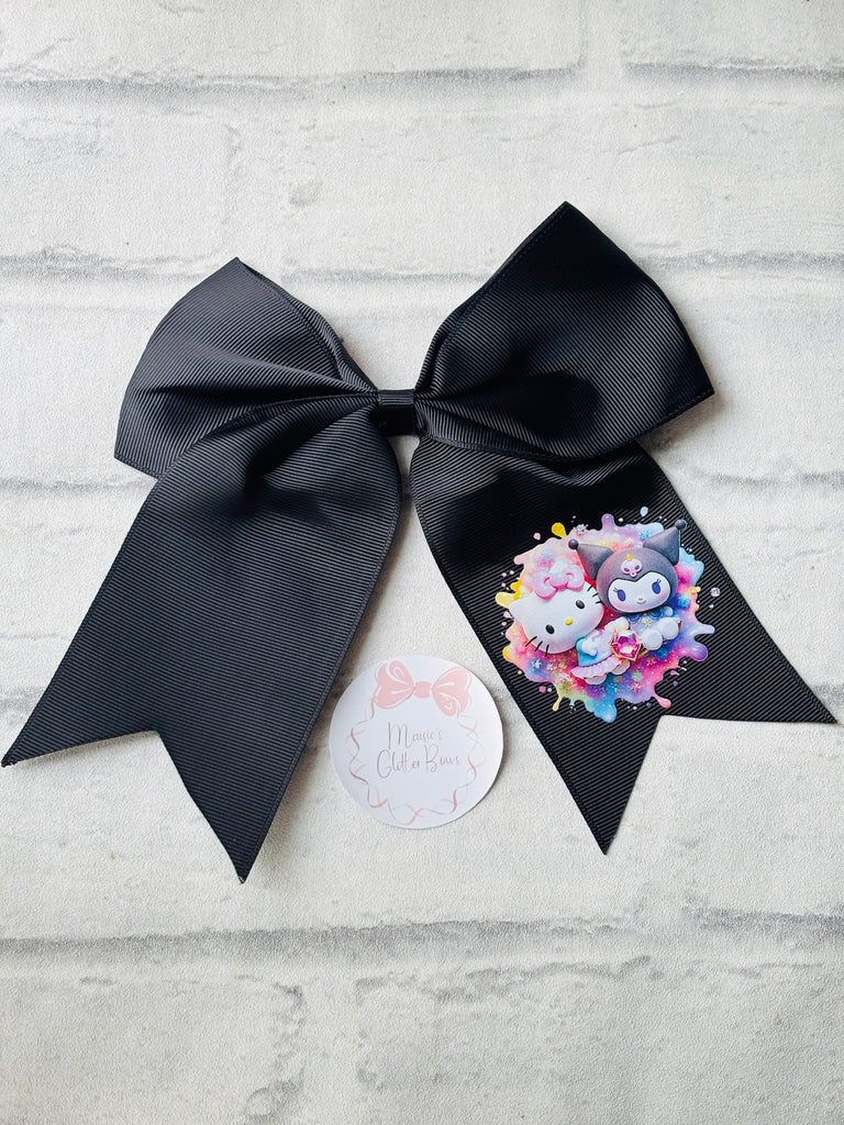 A large 6.5 inch grosgain ribbon ponytail bow, complete with a DTF transfer
