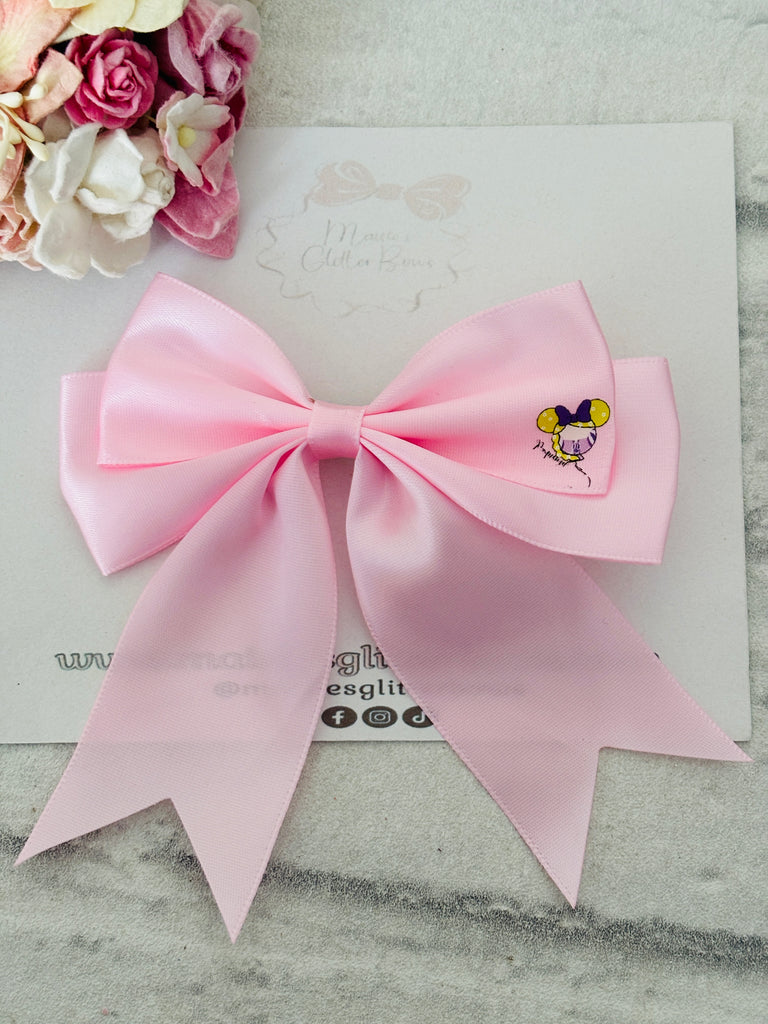 A 4 Inch ribbon ponytail bow, complete with a DTF transfer
