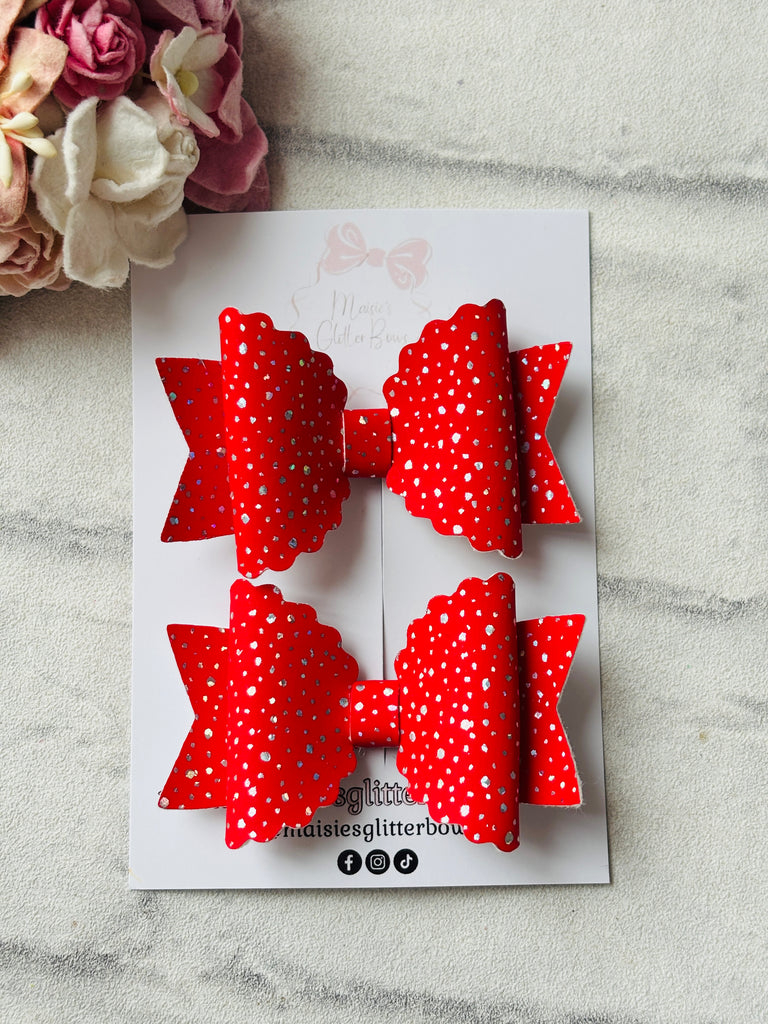Each bow comes attached to an alligator clip (one is attached to go one right hand side and the other is placed to go other left hand side)